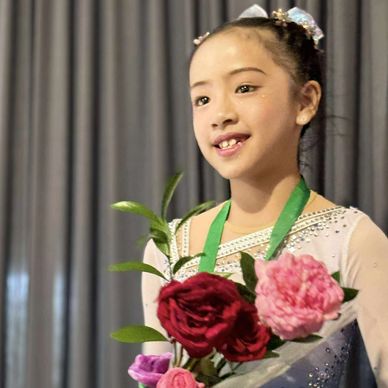 Hi, I'm Lily. This is my second year in the club. I'm 13. My favorite color is pink. I like spinning over jumping.